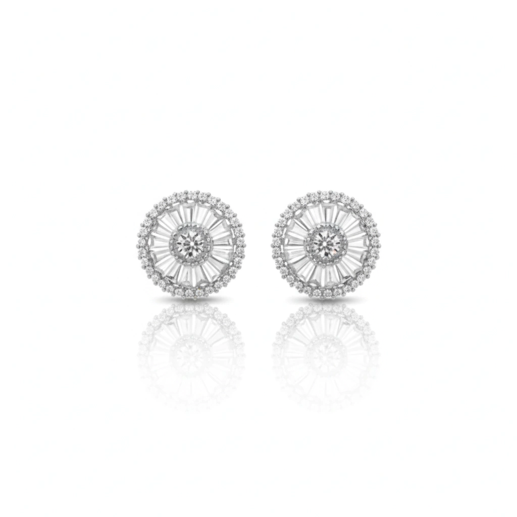 O Brinco Pizza é uma joia que irradia brilho e sofisticação. Seu design redondo, com detalhes em zircônias baguete e cristais centrais reluzentes, remete aos raios solares, simbolizando energia e elegância. Banho em ródio branco com toque contemporâneo, perfeito para iluminar qualquer look, do dia à noite.