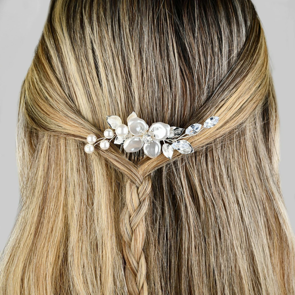 Os pentes são adereços perfeitos para o grande dia. Facilmente encontrados de diversos modelos, estilos, tamanhos e acabamentos. Todos os nossos pentes possuem um acabamento impecável, digno de uma princesa. Possuem dentes em sua finalização que auxiliam uma melhor fixação e adequação no penteado. Indicado para usar tanto em semi-preso quanto coque, de modo central ou lateral. São peças versáteis e que se adaptam a todos penteados.