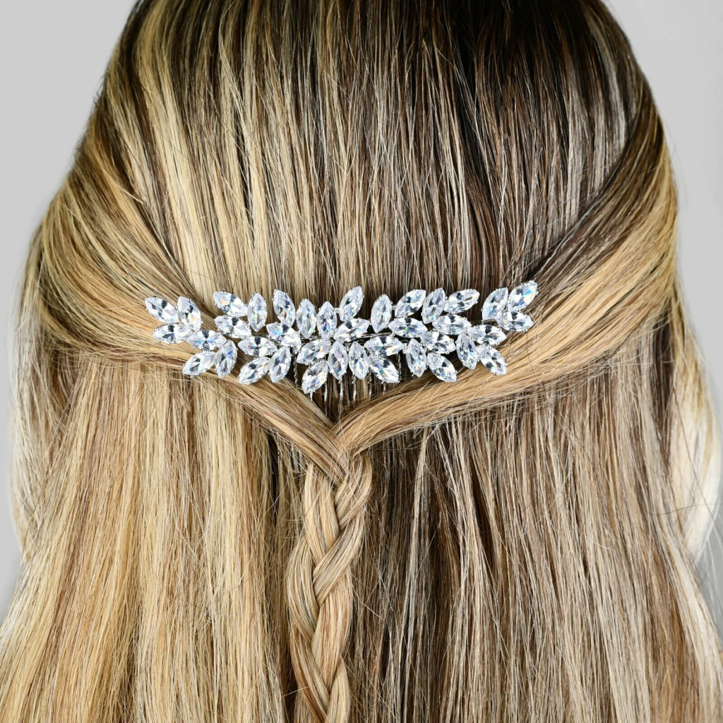 Os pentes são adereços perfeitos para o grande dia. Facilmente encontrados de diversos modelos, estilos, tamanhos e acabamentos. Todos os nossos pentes via de regra são finalizados com zircônias e um acabamento impecável, digno de uma princesa. Possuem dentes em sua finalização que auxiliam uma melhor fixação e adequação no penteado. Indicado para usar tanto em semi-preso quanto coque, de modo central ou lateral. São peças versáteis e que se adaptam a todos penteados.
