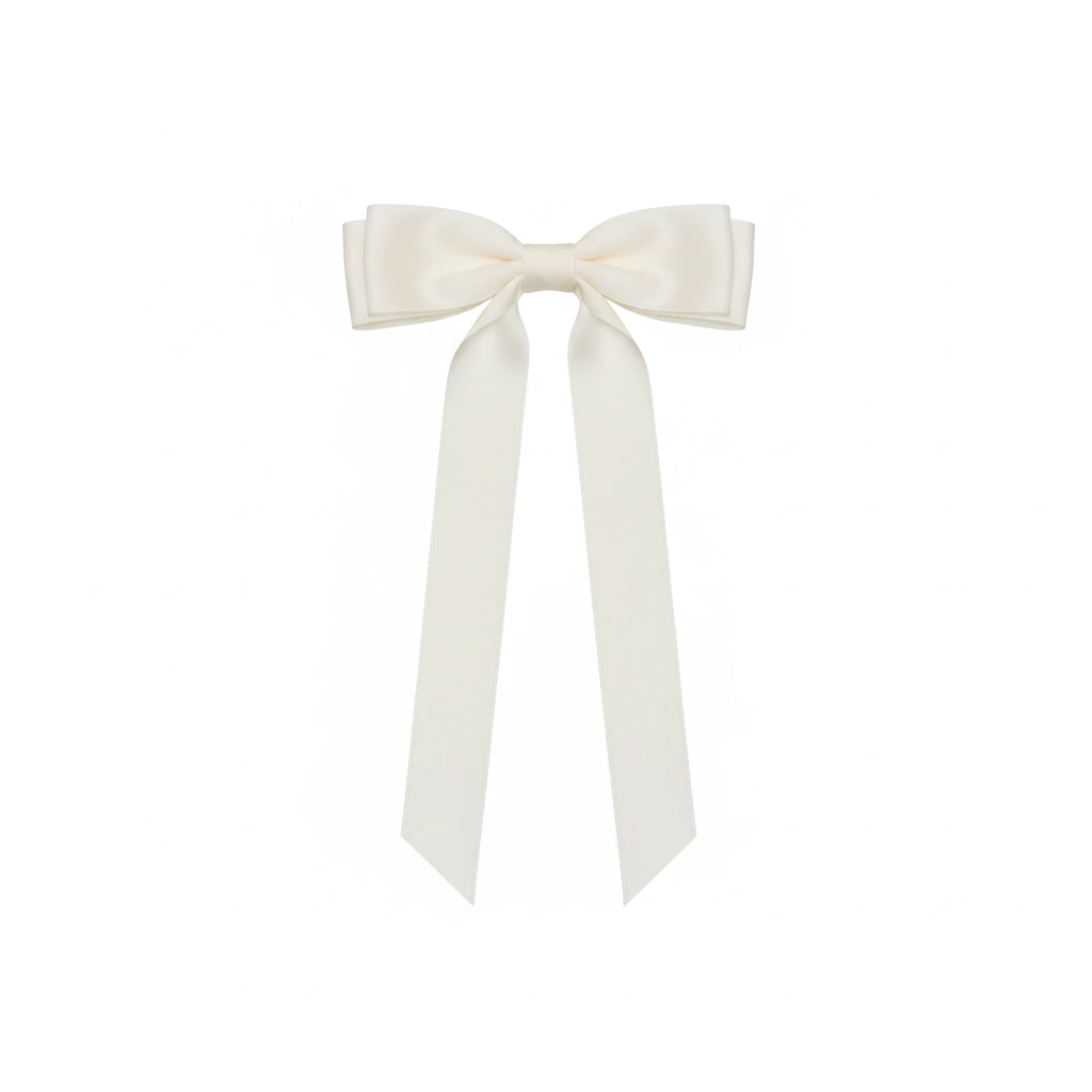 Feito com uma fita dupla, longo, essa presilha fica lindíssima no meio preso, no rabo de cavalo ou na finalização de um coque. Noivado, Civil e Religioso conversam muito bem com esse tipo de acessório.